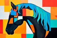 De levendige kleuren en geometrische vormen geven dit indrukwekkende paardenportret een dynamische energie. Het krachtige silhouet van het majestueuze dier in combinatie met de levendige accenten creëert een betoverende sfeer. Ideaal voor een moderne woonkamer die vraagt om een opvallend kunstwerk en een gesprek stimuleert.