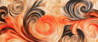Vloeiende vormen dansen in warme tinten rood en crème, terwijl zachte zwarttinten diepe contrasten creëren. Deze levendige compositie straalt energie en creativiteit uit en voegt een dynamische sfeer toe aan elke kamer. Ideaal voor een woonkamer of een creatieve hoek, waar het inspirerende gesprekken stimuleert en de sfeer verlevendigt.