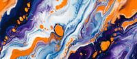 Een fascinerend samenspel van levendige paarse en oranje tinten, die doen denken aan een levendige sterrenhemel. De zachte, vloeiende lijnen creëren een dynamische beweging, terwijl de opengewerkte kleurspatten spannende accenten toevoegen. Ideaal voor de woonkamer om een vleugje creatieve energie en balans toe te voegen.