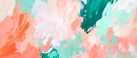 Zachte kleuren dansen harmonieus en creëren een uitnodigende sfeer. De levendige penseelstreken in koraal, mint en wit roepen een gevoel van frisheid en creativiteit op. Dit kunstwerk past perfect in een keuken of moderne woonkamer, waar het gesprekken stimuleert en de sfeer verlicht.