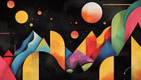 Gekleurde bergen en planeten schilderij die een luxe toevoeging zal zijn aan elke ruimte. Met zijn unieke en stijlvolle uitstraling is het een ware eyecatcher. De schitterende kleuren en het bijzondere ontwerp maken dit kunstwerk 100% uniek en origineel. Het is de perfecte fotoprint om je interieur helemaal af te maken.