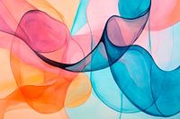 Zachte, vloeiende kleurharmonieën in rosé, blauw en oranje creëren een indruk van levendige lichtheid. De gebogen lijnen en delicate transparanties geven de ruimte een ontspannen sfeer. Ideaal voor de woonkamer, het laat de kijker wegdromen in een wereld waar kleuren dansen en verhalen vertellen. Een echte blikvanger!