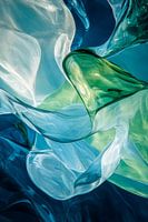 Zachte golven in glinsterende blauwe en groene tinten betoveren de kijker. De filigraanstructuren geven een vleugje lichtheid en doen denken aan het spel van licht en water. Dit kunstwerk is ideaal voor de woonkamer, creëert een ontspannen sfeer en stimuleert de zintuigen.