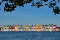Gekleurde huizen aan de Rietplas, de Vlondertuin in Houten, ook wel vissershuizen genoemd.