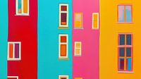 Een rij fel gekleurde huizen met kozijnen. Het werk doet qua kleur en vlakverdeling denken aan het werk van Mark Rothko. Het resultaat is een tijdloos, rustgevend kunstwerk dat een gevoel van minimalisme, stad en balans uitstraalt.