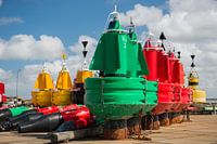 Gekleurde navigatieboeien in onderhoud cq opslag