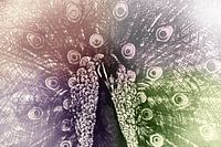 Pronkende pauw. Zijn veren zijn geheel uitgewaaierd.