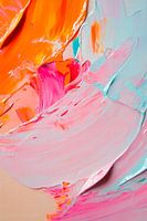 Een spel van levendige kleuren ontvouwt zich in dynamische penseelstreken die energie en vreugde uitstralen. De heldere oranje, roze en zachtblauwe tinten versmelten harmonieus en nodigen uit om te dromen. Dit kunstwerk zou een prachtige aanwinst zijn voor elke woonkamer, waar het gesprekken kan stimuleren en de stemming kan verhogen.