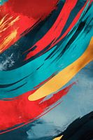Een krachtig samenspel van levendig rood en blauw, afgewisseld met elegant geel en zwart, ontvouwt zich in dynamische penseelstreken. Deze artistieke explosie trekt ieders aandacht en geeft elke kamer een energieke sfeer. Perfect voor een woonkamer om creativiteit en levensvreugde te stimuleren.