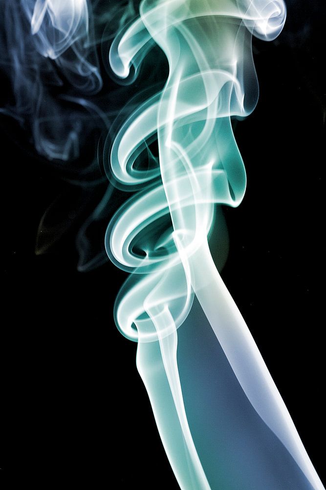 Foto van rook van een wierookstaafje . In de studio gefotografeerd tegen een zwarte achtergrond, en later nabewerkt in photoshop.