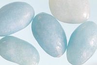 Snoepgoed in een zachte pastelkleurige blauwtint. Het lijken wel kleine steentjes.