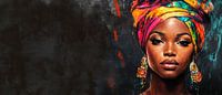 Een krachtige uitdrukking van schoonheid en cultuur schittert in het levendige kleurenspel van de hoofddoek, die de draagster streelt. De glans en sierlijke details trekken op magische wijze de aandacht. Dit kunstwerk geeft een speciaal tintje aan elke woonkamer en stimuleert inspirerende gesprekken vol diversiteit en creativiteit.