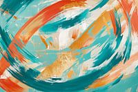 Levendige kleurenstromen in turquoise, oranje en zacht goud smelten samen tot een vrolijke dans van emoties. De dynamische penseelstreken nodigen de kijker uit om de lichtheid van het zijn te voelen. Ideaal voor een ruime woonkamer, waar deze harmonieuze energie inspireert tot ontspanning en creativiteit. Een echte blikvanger die levensvreugde verspreidt!