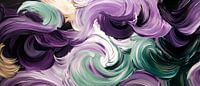 In een verleidelijke werveling van zachte violette en groene tinten ontvouwt zich een bewegende harmonie die zowel dynamiek als rust uitstraalt. De gebogen lijnen en het contrast met diepe, donkere delen geven de kamer een kunstzinnige diepte. Perfect voor de woonkamer om stijlvolle accenten te zetten en indruk te maken op gasten.