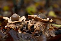 Dit werk toont een gekraagde aardzwam. De paddenstoel is hoofdzakelijk in de kustprovincies te vinden.