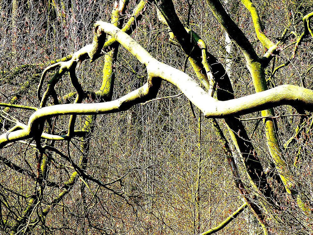 Kronkelende boomtakken in kleur