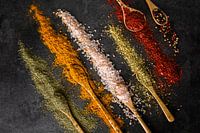 Specerijen en kruiden zijn beide plantaardig. Het verschil tussen de twee is niet vastomlijnd. Met kruid wordt meestal verwezen naar een smaakmaker afkomstig van een kleine groene plant. Zulke planten groeien vaker in gematigde klimaten en voornamelijk het bladgroen en stengels worden gebruikt als smaakmaker. Met specerij wordt meestal verwezen naar een smaakmaker uit andere, voornamelijk tropische klimaten. Van deze planten worden ook de bloemknoppen, meeldraden, zaadjes, vruchten, bast, en wortelstok gebruikt.