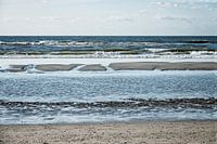 Deze foto is gemaakt aan het strand bij Bergen aan Zee in Noord Holland. Mijn oog viel op de afwisselende lagen zand, water en lucht en de bijbehorende verschillende structuren en kleuren.