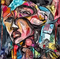 "Gelaagde Gevoelens" is een diepgaand kunstwerk dat de complexiteit van menselijke emoties en ervaringen weerspiegelt. Door het gebruik van levendige kleuren en abstracte vormen, heb ik geprobeerd de diverse lagen van het innerlijke leven vast te leggen. Het gezicht, samengesteld uit verschillende facetten, symboliseert de vele rollen en maskers die we dragen in ons dagelijkse bestaan.