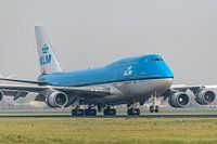 Geland! KLM Boeing 747-400, de PH-BFI, City of Jakarta), heeft zijn landingsgestel op de Polderbaan van luchthaven Schiphol gezet.