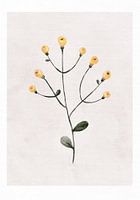 Simpele, mooie schildering van een plant met gele bloemetjes. Tegen een rustige achtergrond met structuur.