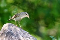 Gele Grasmus (Hippolais icterina) zittend op een steen in het voorjaar.