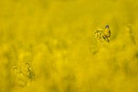 Gele Kwikstaart (Motacilla flava) in koolzaadveld op Texel.
