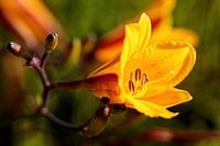 Close-up van de bloem van een gele Lelie met duidelijk zichtbare stamper en meeldraden.