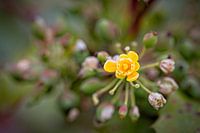 Close-up van een bloemetje van de gele mahonie struik