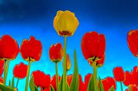 Gele Tulp tussen de Rode Tulpen van Alex Hiemstra