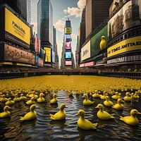 Koop dit digital art kunstwerk Gele badeendjes op Times Square van Gert-Jan Siesling als reproductie op canvas, aluminium dibond, (ingelijste) fotoprint, behang en ArtFrame, op maat geprint in Fine-Art kwaliteit.