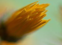 Een gele bloem die nog net geen volledige bloei heeft als een abstracte foto gemaakt.