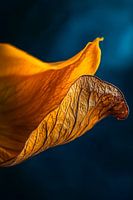 De zachte golven van een helder gouden bloemblaadje creëren een harmonieuze combinatie van elegantie en natuur. De delicate nerven en subtiele textuur voegen diepte en karakter toe. Perfect voor een stijlvolle woonkamer, waar het tegelijkertijd rust en inspiratie uitstraalt en de kamer baadt in een warm licht.