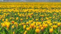 Gele tulpen met bokeh in bollenveld in Flevoland (Nederland).