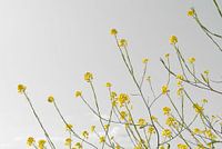 Afbeelding van kleine gele bloemetjes tegen een prachtige lichte lucht. Geeft een heerlijk zomers en voorjaars gevoel. Passend bij diverse trends en in meerdere interieurs.