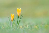 Dit werk "Twee gele krokussen tussen het gras" word aangeboden door John van de Gazelle op Werk aan de Muur