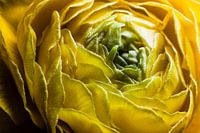 Beeldvullend detail van een bloeiende gele ranonkel.