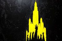 Dit unieke ontwerp combineert een indrukwekkende silhouet van een skyline met uitgestoken handen, die een dynamisch gevoel van beweging en ambitie uitstralen. Het contrast tussen het intense zwart en het stralende geel zorgt voor een krachtige visuele impact die zowel modern als minimalistisch aanvoelt. Perfect als statement-piece in een kantoor, woonkamer of andere moderne ruimtes. Het design roept vragen op, stimuleert gesprekken en voegt karakter toe aan elk interieur.