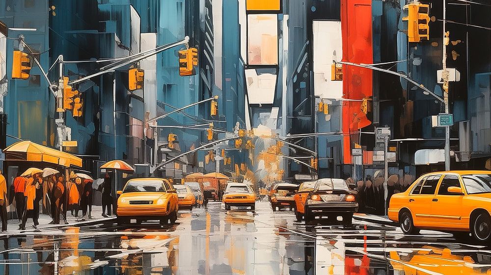 Gele taxi op straat in de grote New York City, abstracte kunst