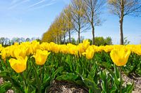 Gele tulpen op een gebied in Holland tijdens een mooie dag in de lente. Tulpen zijn een beroemd Nederlands symbool en een belangrijk landbouwexportproduct voor Nederland.