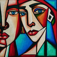 Dit werk in een figuratieve en expressionistische stijl geschilderd in acrylverf heeft als onderwerp de relatie tussen twee of meer mensen. Ik heb bewust de expressionistische meesters goed bestudeerd en geprobeerd de veelzijdigheid van alle kanten van een gezicht op een gestileerde manier weer te geven. Ik heb ook geprobeerd de spanning tussen mensen weer te geven, want hoe je het ook bekijkt, er is altijd een soort spanning aanwezig in een realiteit; dit in de goede en in de slechte zin van het woord. Beschouw dit werk als een spiegel van je eigen relatie.