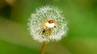 Een klein lieveheersbeestje zit op een paardenbloem.