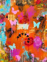 Hommage aan de jaren 70. Modern en abstract acrylschilderij. Geen AI-kunstwerk.