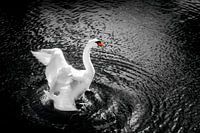 Een zwaan die blijkbaar heel gelukkig is in het vijverwater in Nieuwegein. Het was lente en deze zwaan was al een paar keer bezig om in de lentezon de vleugels te strekken. En dat strekken doen ze best snel.