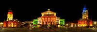 De historische en beroemde Berlijnse Gendarmenmarkt in speciale verlichting 's nachts (ter gelegenheid van een Berlijns lichtfeest)