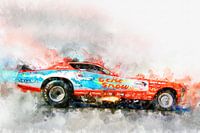 Illustratie van een serie legendarische dragsters en hot rods. Geschilderd met aquarellen op papier.
