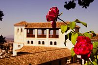 Koop de foto Generalife in Granada met roos van Travel.san op canvas, aluminium dibond, (ingelijste) fotoprint, behang en ArtFrame, op maat geprint in Fine-Art kwaliteit.