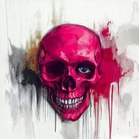 Deze gedurfde illustratie zet de menselijke schedel centraal, doordrenkt met felle kleuren en abstracte elementen die de vergankelijkheid van het leven in een intense visuele stijl vastleggen. De schedel, die in levendig magenta is weergegeven, straalt een ongekende kracht uit door de nadruk op de gedetailleerde texturen van de…