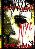 Mix van tekening, typografie, foto-collage. Generatie rock. New York. Jeugd.