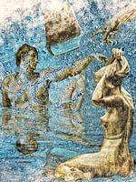 Genesis - Adam en Eva Boek van Genesis, Mozes, de Bijbel, het Oude Testament, het digitale schilderen, collage, illustratie, mythologie, mythen, Edda, van de zee, reflectie, illustratie, grafisch, water tafel, boek, wolken, hemel, muurschildering, naakt schilderen, naakt, erotisch, naakt, fresco, typografie, mysterie, naaktheid, hulde aan Michelangelo Art Painting aquarellen, acryl, grafiek, illustraties, digitale kunst, foto kunstenaarstalent, Fotografie Christine Nöhmeier Simbach am Inn alias Chris Berger